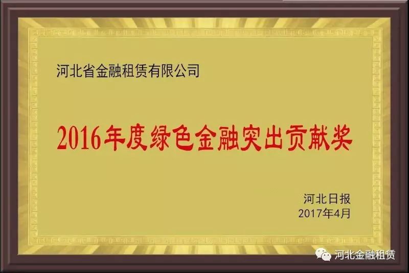 榮譽 | 河北金租榮膺“河北省綠色金融突出貢獻獎”