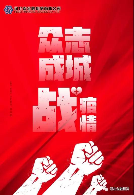 正值新型冠狀病毒感染肺炎疫情防控的關鍵時期,河北省金融租賃有限公司(以下簡稱“河北金租”或“公司”)積極貫徹落實各級黨委政府和監管部門的工作部署,把疫情防控及金融服務保障作為當前工作的重中之重,切實履行社會責任,眾志成城,投身“抗疫”戰場。