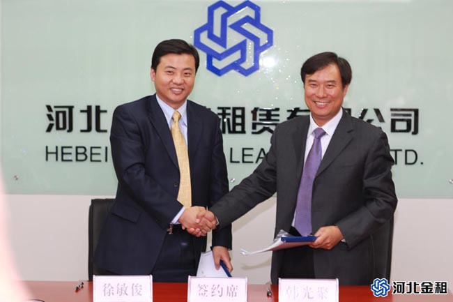 2012年4月17日,我公司與中信銀行石家莊分行在石家莊市河北建投大廈舉行了全面合作簽約儀式,公司總裁徐敏俊與中信銀行石家莊分行行長韓光聚代表雙方簽署了《全面合作協(xié)議書》,為充分發(fā)揮雙方優(yōu)勢,建立了長期、穩(wěn)定、良好的合作關系。雙方就銀租合作需求進行深入探討,進一步達成“地域性合作”需求,立足河北,共同致力于為客戶提供專業(yè)化的銀行與租賃的綜合金融服務,實現(xiàn)強強聯(lián)合、優(yōu)勢互補和效益共贏。