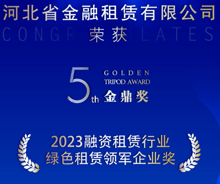 榮譽 | 河北金租榮獲“金鼎獎”2023年度綠色租賃領(lǐng)軍企業(yè)獎