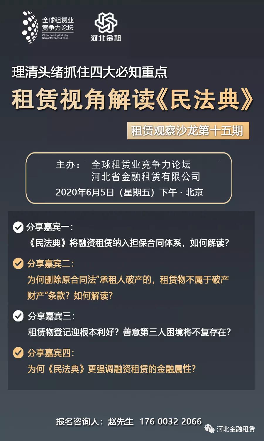 《中華人民共和國(guó)民法典》近日正式公布,標(biāo)志我國(guó)“民法典時(shí)代”到來(lái)。《民法典》涉及多項(xiàng)與融資租賃密切相關(guān)的法律條款,擴(kuò)大了動(dòng)產(chǎn)擔(dān)保合同的范圍,將融資租賃納入擔(dān)保合同,將對(duì)融資租賃業(yè)的經(jīng)營(yíng)活動(dòng)產(chǎn)生深遠(yuǎn)影響。 6月5日下午,全球…